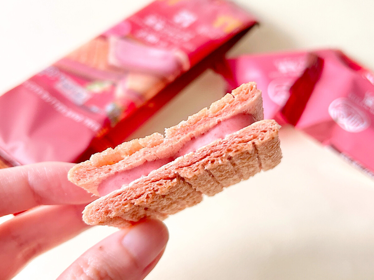 外酥內柔,餅乾與內餡都融入草莓風味,