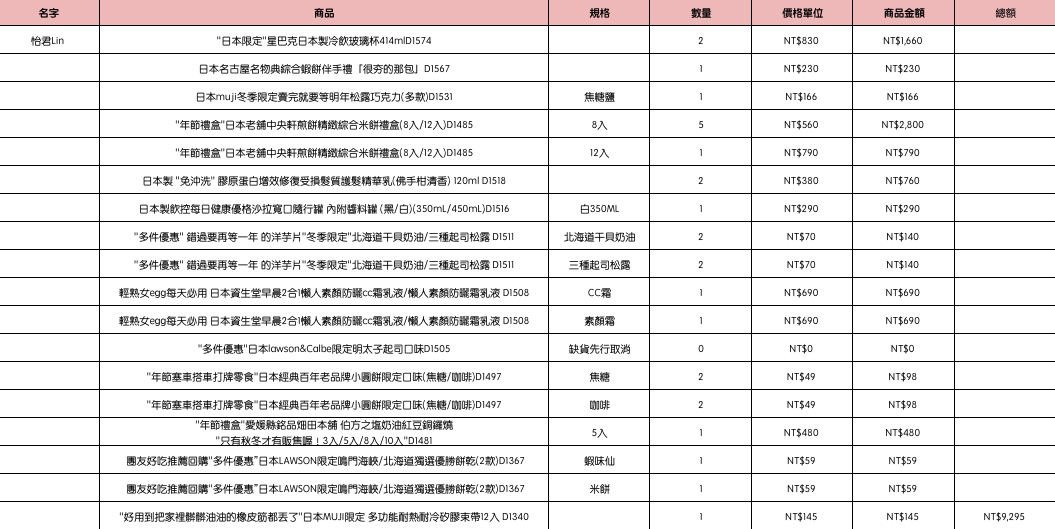結帳時請幫忙核對商品數量跟品項