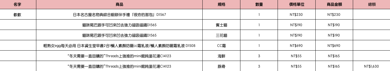 結帳時請幫忙核對商品數量跟品項