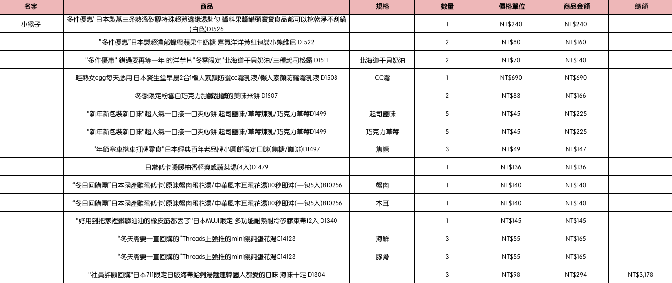 • 我有單還沒有出貨,想併單一起出貨就好(如有到達免運門檻就不用補運費或是把原本的運費存到購物金裡)