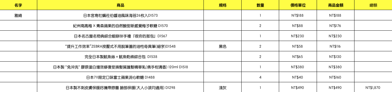 結帳時請幫忙核對商品數量跟品項