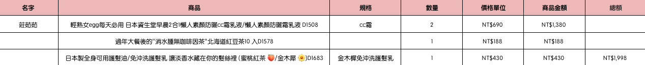 結帳時請幫忙核對商品數量跟品項