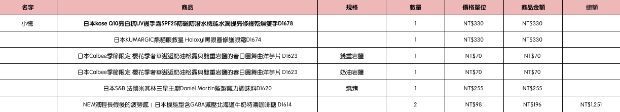 結帳時請幫忙核對商品數量跟品項