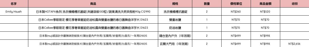結帳時請幫忙核對商品數量跟品項