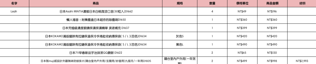 結帳時請幫忙核對商品數量跟品項