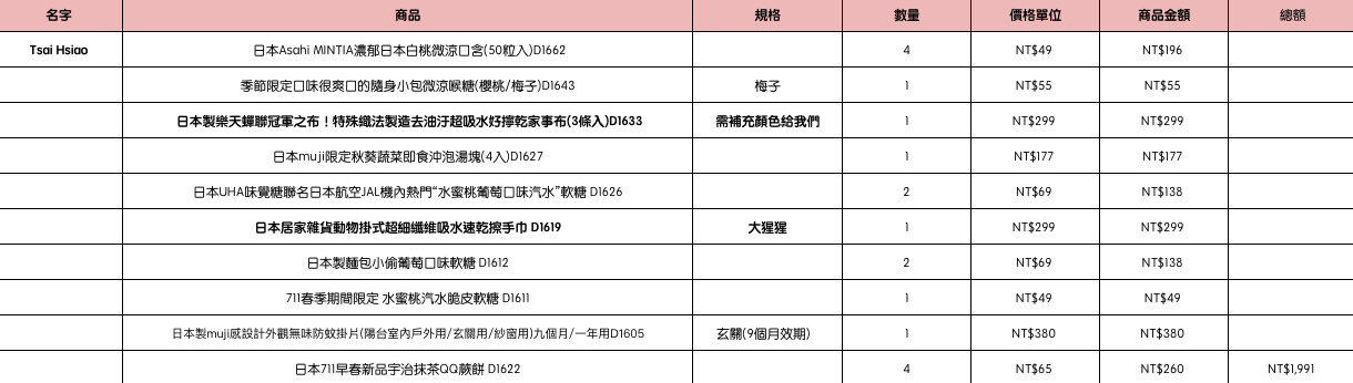 結帳時請幫忙核對商品數量跟品項