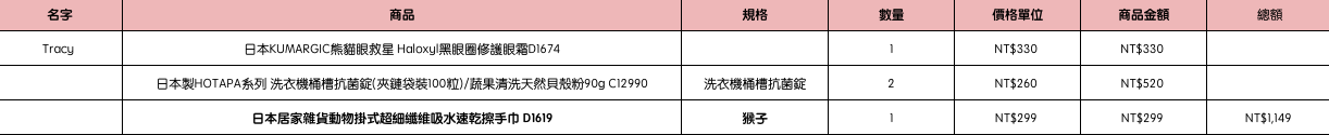 結帳時請幫忙核對商品數量跟品項