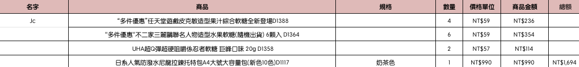 結帳時請幫忙核對商品數量跟品項
