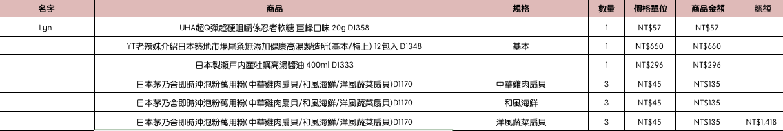 結帳時請幫忙核對商品數量跟品項