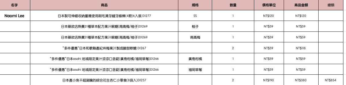結帳時請幫忙核對商品數量跟品項