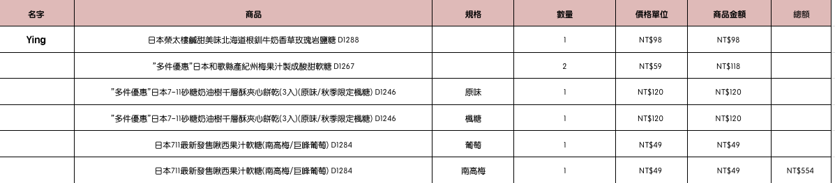 結帳時請幫忙核對商品數量跟品項